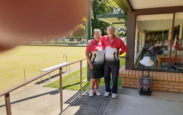 MYRTLEFORD Bowls Club ladies' singles champion Mary Tragardh and men's Singles Champion Lance Symons represented their club last Sunday at the Corowa RSL greens in the Champion of Champions for the Ovens & Murray Bowls Region.