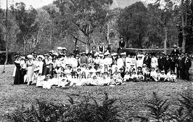 Beneath the Mount Buffalo plateau, two nearby picnic places below Buffalo's western slopes could be found on two creeks...