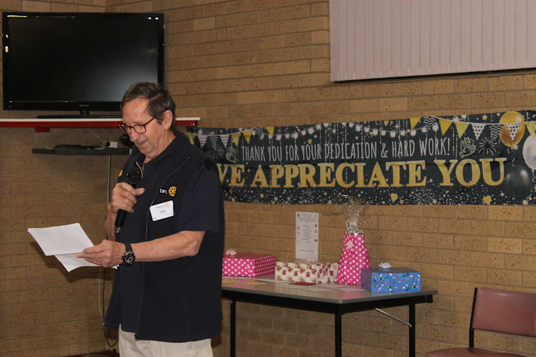 "A number of local businesses have been so generous and helpful with these gifts for the raffle: I want to say a big thank you to the Star Hotel, Alpine Gourmet Meats, Bright Brewery, Bright Ice Creamery, Riverdeck Kitchen, Alpine Shire, Rich Glen, the Beechworth Bakery and to the bowls club for this venue.