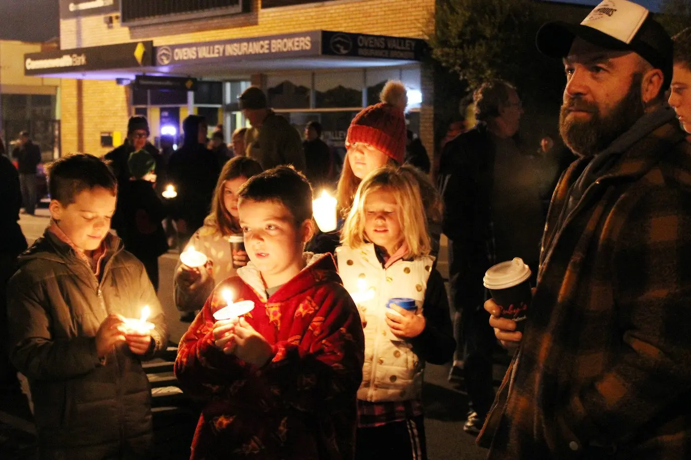 MYRTLEFORD father Anthony Szaraszek (right) roused his children Hunter, Oscar and Willow from their beds to attend the Anzac Day dawn service in Myrtleford on Sunday.