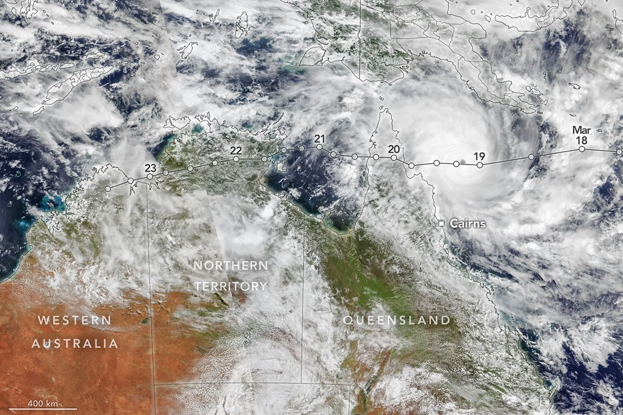 The main weather feature of the past 10 days was tropical cyclone Narelle which first formed in the Coral Sea east of Cooktown and then crossed the coast and passed into the gulf near Weipa which had 688mms of rain in three days - the heaviest March rainfall since 1996.