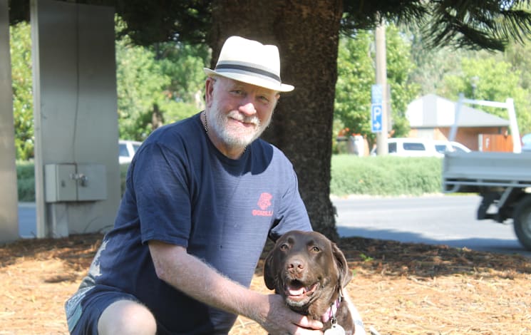 Since 2007. My late wife and I lived in Melbourne and often visited friends who had a house in Porepunkah. The Happy Valley Pub was for sale at the time, so I bought it and became the publican there until 2016. Luna is the second chocolate lab I've had. She's seven years old and she loves being out and about in town.