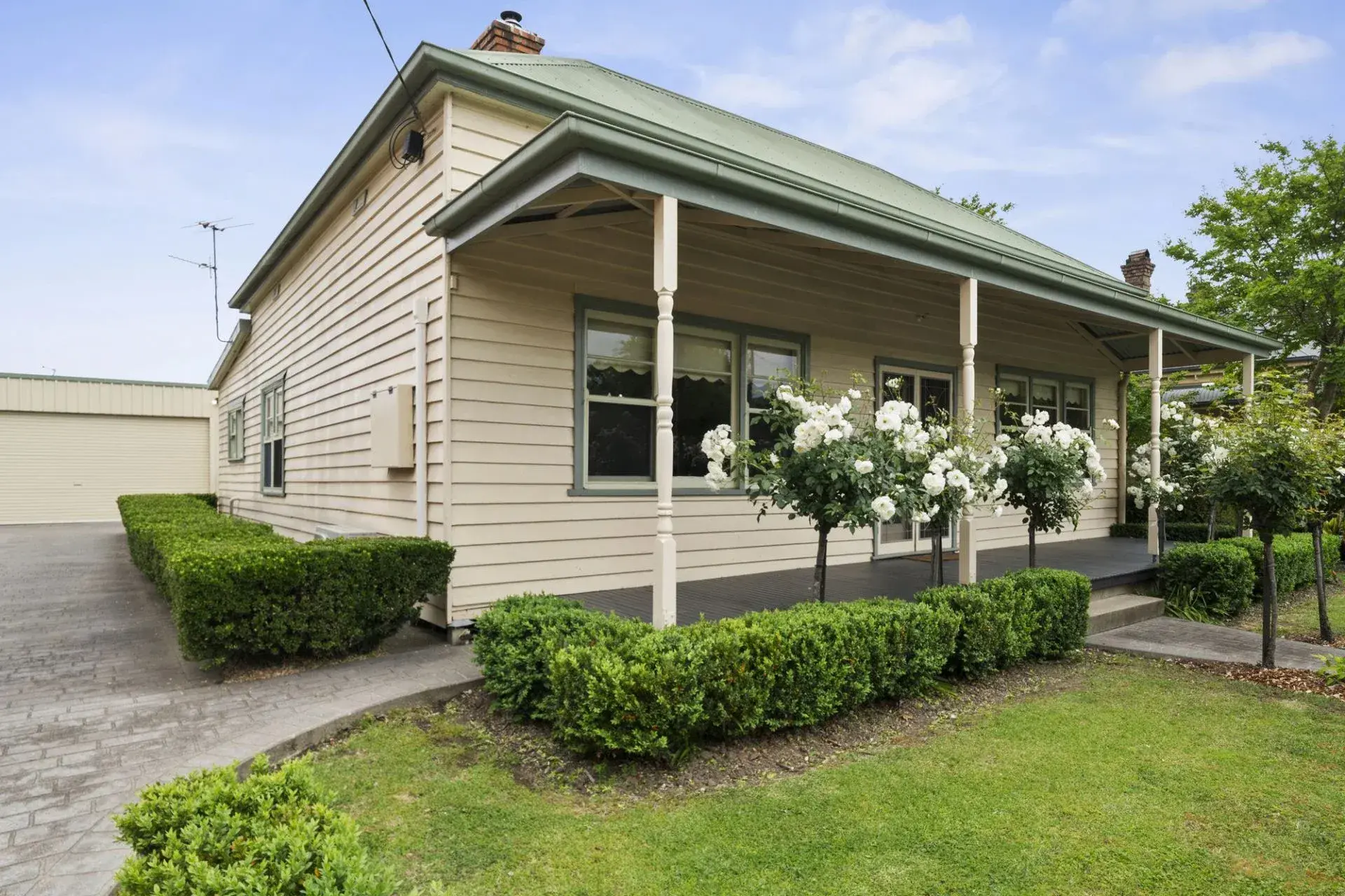 Perfectly positioned within easy walking distance of the town centre, this beautifully presented three-bedroom weatherboard cottage offers the ideal blend of charm, comfort, and convenience. Set on an impressive 645sqm allotment, the home captures the essence of relaxed country living with all amenities just moments away. Designed with both style and practicality in mind, it features two bedrooms with built-in robes and a versatile third bedroom suited for guests, a home office, or nursery. The fully renovated bathroom exudes sophistication with floor-to-ceiling tiles, a walk-in shower, modern vanity, and WC, complemented by a second separate WC for added functionality.