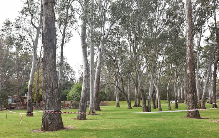 A section of Merriwa Park remains closed pending assessments of potentially dangerous red gum trees in the iconic picnic lawn area.