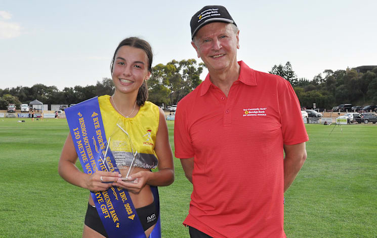 The rising superstar's win at Rye is her first gift win in the Victorian Athletics League and follows in the ...